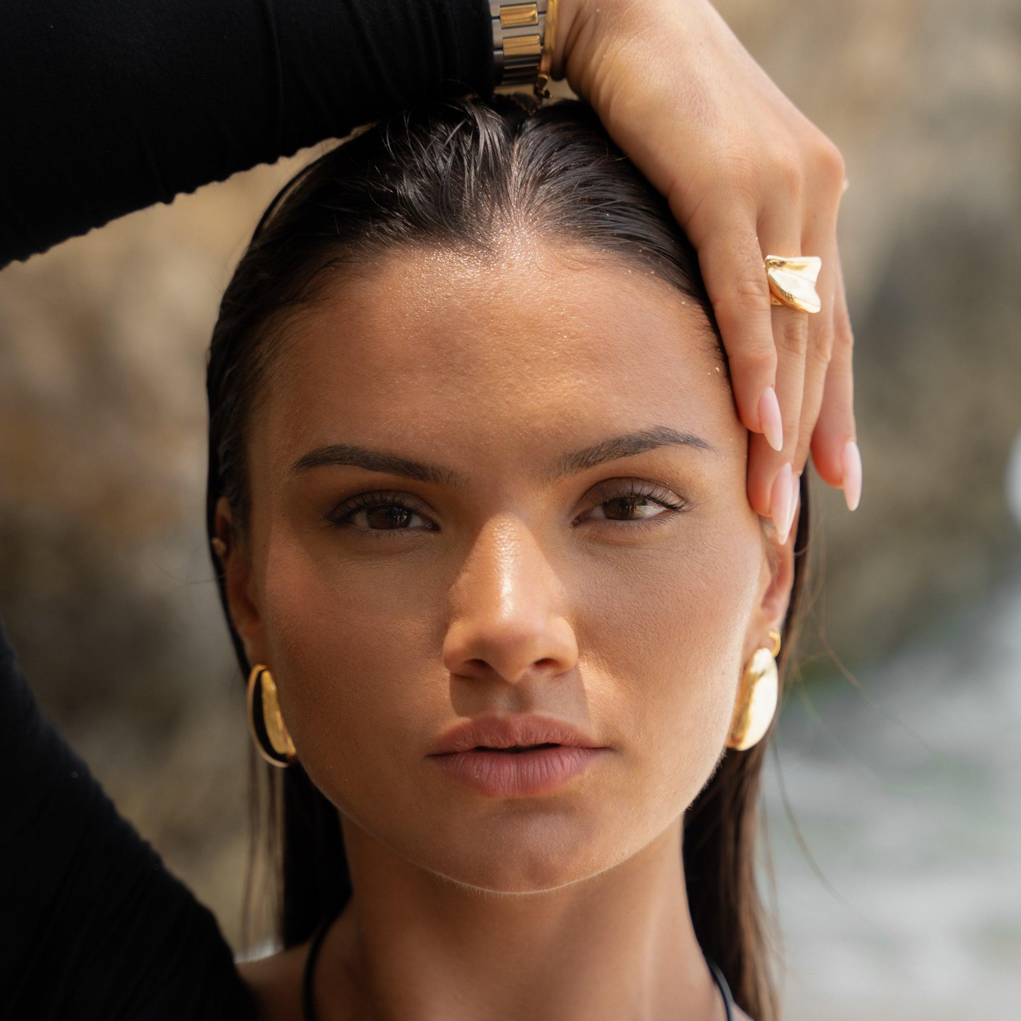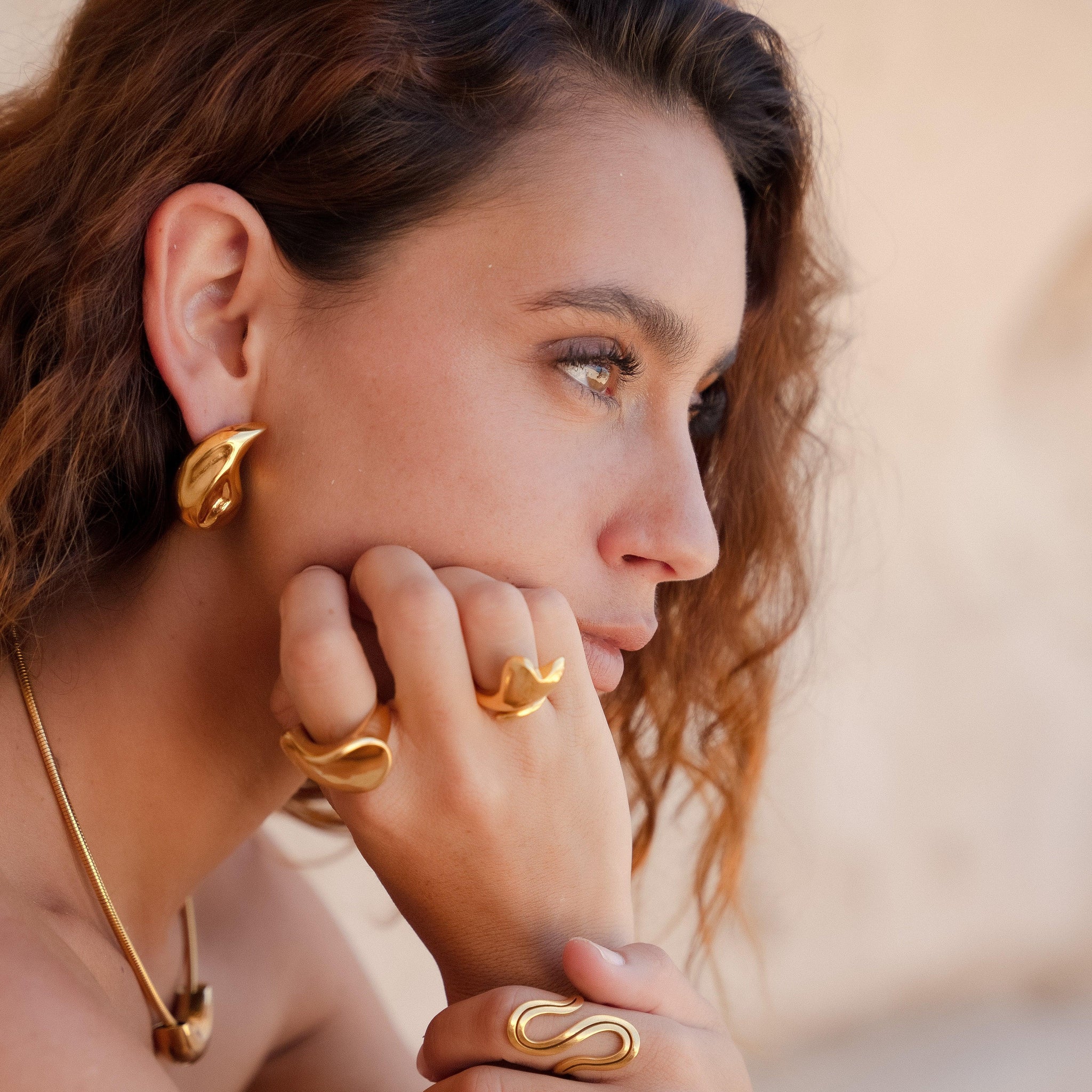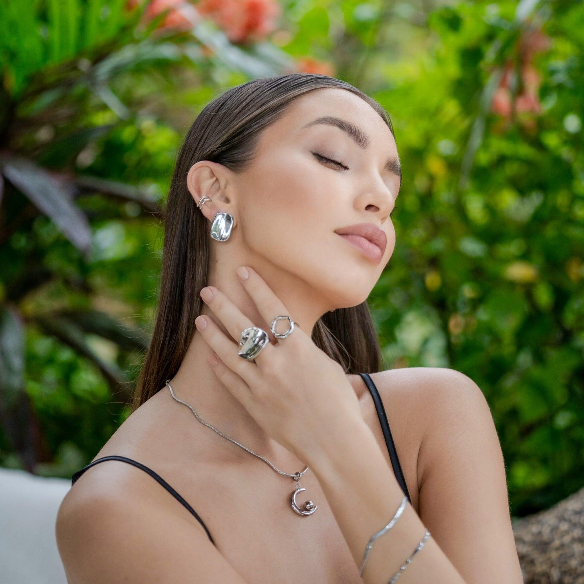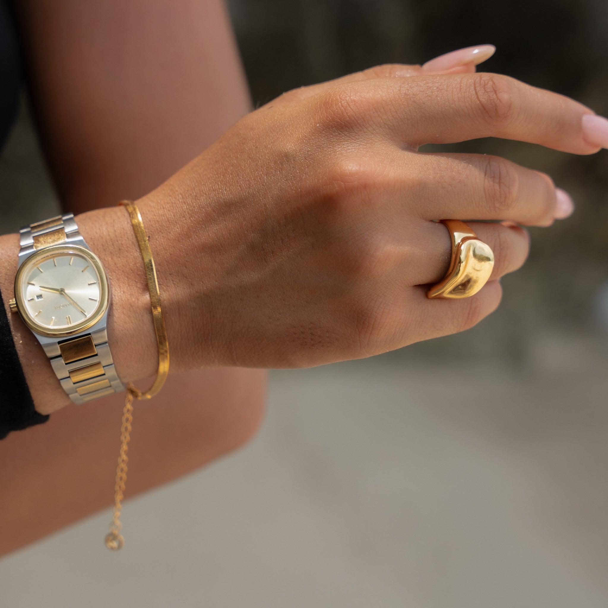O Anel Marina traduz a elegância do oceano em uma silhueta polida e fluida, inspirada no movimento suave das marés. Um design sofisticado que adiciona charme natural a qualquer composição.